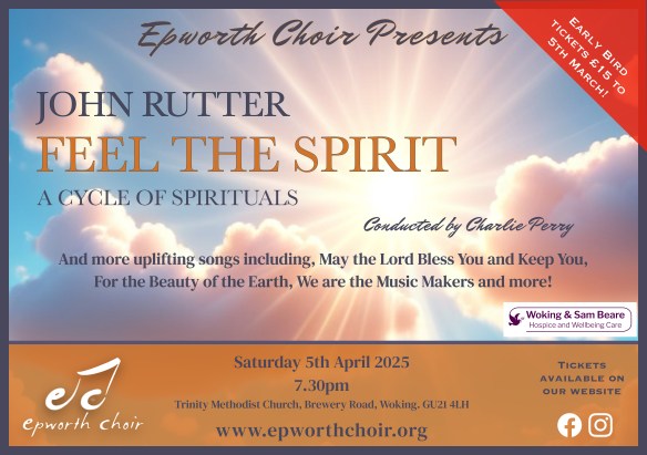You can buy tickets by using this link – Buy Tickets – If you are not able to purchase on-line please email chairman@epworthchoir.org to reserve tickets to pay on the door or to pay via bank transfer.